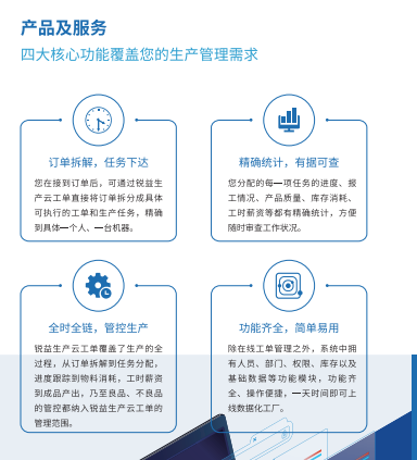 具體來說,銳益生產(chǎn)云工單軟件系統(tǒng)通過其強大的數(shù)據(jù)處理能力,能夠?qū)崟r收集生產(chǎn)線上的數(shù)據(jù),分析生產(chǎn)效率,從而幫助管理層做出更加精準的決策。此外,該系統(tǒng)還具備故障預(yù)警功能,能夠在出現(xiàn)問題時及時通知維護人員,減少了設(shè)備故障帶來的生產(chǎn)損失。