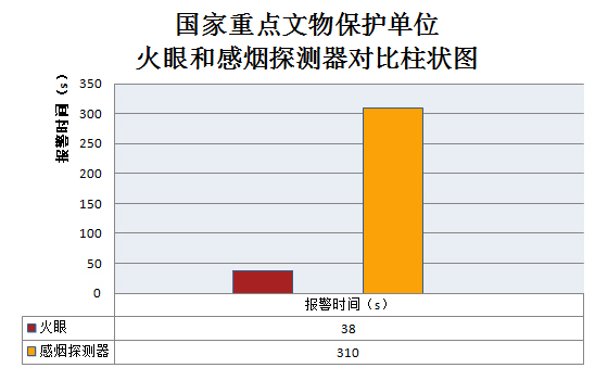 截至目前,“火眼”技術應用于北京萬壽寺、白塔寺、孔廟、國子監、北京故宮,莫高窟等文博單位。試驗期間共進行火焰測試128次,報警時間5~56秒,平均時間23秒。煙霧測試83次,報警時間14~41秒,平均時間27秒。 “火眼”技術和感煙探測器對比試驗3次: “火眼”軟件平均報警時間:38秒; 感煙探測器報警時間:310秒。
