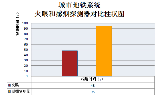 “火眼”技術于2014年成功試點安裝于上海地鐵十三號線大渡河站,隨后數月覆蓋安裝于南京西路站、淮海中路站、自然博物館站等。“火眼”技術于地鐵系統共做火焰測試9次,報警時間:20~53秒,平均時間:38秒;煙霧測試9次,報警時間:20~60秒,平均時間46秒。 “火眼”技術和車站感煙探測器對比試驗6次: “火眼”軟件平均報警時間:48秒; 感煙探測器報警時間:95秒。